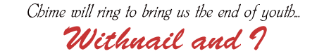 I"は、1986年に作られたブルース・ロビンソンの初監督作品です。 1960年代のサイケデリックな雰囲気、そしてその終焉を非常に思い出深く描いています。その時代を生身で生きた監督による脚本や、ぴったりマッチした2 人の若い俳優の起用。イギリス人のウィットがそこかしこに溢れ、イギリス色に染められた映画のトーン・・・。 甘くて切なくて、とにかく笑える話です。 ** 2004年7月現在、日本での公開実績は吉祥寺のバウスシアターで数年おきに上演されたという数回のみで、 これも今では上映権が切れてしまっているそうです。 今のところ日本でこの作品を見るためには、 アメリカ、もしくはイギリスなどで発売されているDVDまたはビデオを購入するほかないようです。 ** 日本では全く無名な"Withnail and I"ですが、 本国イギリスでは英国映画協会による「20世紀の映画Best100」中の 29 位 にランクされたり、定期的に映画館で上映されていたり・・・と、 公開から20年近く経つにも関わらず多くの人に愛され続けている作品です。 ** 「何者か」になろうともがく若者の姿や、それを諦めてしまった人間の姿。 井上靖の「あすなろ物語」を思わせるような青春劇かと思えば村上春樹の「風の歌を聴け」の中の 主人公と鼠のようにひたすらアルコールに浸る登場人物達。 60年代に限らず、どの時代にも存在する精神性のようなものが、 きめ細やかに、美しく、そして物憂げに描かれています。 この映画が長くイギリス人達の心を捉え続けている理由なのではないでしょうか? ** "Witnail and I"は、今のところ私が一番好きな映画です。 この映画の良さが少しでも多くの人に伝わるとよいな、と思ってこのウェブページを作りました。 私が"Withnail and I"の存在を知ったのは こ のページで、 何か強烈なオーラを感じて秋葉原のSALEで購入しま した。 購入したのはアメリカのcriterion 版で、画質、音楽、字幕、そしておまけ、 と文句のないパッケージでした。 価格は5,000円くらい。 脚本はamazon.comあたりから買うしかないかなぁ・・・と思っていたところ、 偶然 amazon.co.jp のマーケットプレイスに出ているのを発 見。 paperbackshop.co.ukの 出品だったようです。 注文してから約10日で到着。 価格は送料などを含めて1,500円くらい。 2005年度初頭にアメリカに行く機会があったので、BFI MODERN CLASSICSシリーズとして 出ているKevin Jacksonによる解 説本をゲットしてみました。 飛行機の中でペラペラと読んでみたのですが、これはなかなかよいです。 映画やロビンソン監督に関する知らなかった新事実がちょこちょこ書いてあります。 本の薄さに対する値段としてはイマイチ感が漂いますが、 「ウィズネイルと僕」が好きな人であればほぼ買っておいて損はないでしょう。 この本を読んで久しぶりに"Withnail and I"熱が再発したので、 あらすじやら自分なりの解説やらを織り交ぜた、まとまった文書を書こう!! ・・・と思い立ったまではよかったものの、あえなく途中で挫折。 あらすじだけでも興味のある人がいるかもしれないので、 書きかけのものを公開しておきます。 書き上げた暁にはまたアナウンスしますので、 完全版の登場は気長にお待ちください。